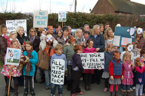 Saturday saw a mass lobby at Westbury Village Hall against pylons being brought through Chirbury and Worthen Division to Westbury and beyond. These pylons will be built to link Wind farms in Powys to the National grid. "This valley is just off the AONB, has several Higher Level Stewardship Schemes and at least 2 SSSI's." Heather Said today. If the electricity has to come through beautiful areas such a s ours we must be sure that there are no health issues, that tourism is not discouraged and that it remains a place where people want to live. The lines must be underground."